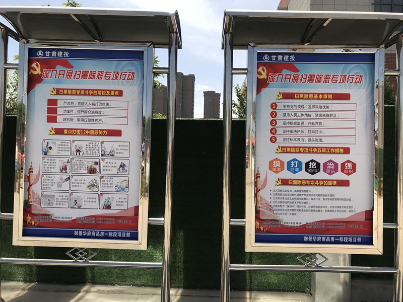 御景華府、平?jīng)鲆恢行滦^(qū)、惠民大廈三個(gè)工地現(xiàn)場采取宣傳欄、電子顯示屏、懸掛條幅、公布舉報(bào)電話及各種會(huì)議,大力宣傳打贏“掃黑除惡”專項(xiàng)斗爭的重大意義。讓參建各方深入了解建筑工地常見的屬于重點(diǎn)打擊范圍的黑惡勢力的情形,深刻認(rèn)識到黑惡勢力對社會(huì)和諧穩(wěn)定的危害,并做到不參與黑惡勢力,不做涉黑涉惡的行為。