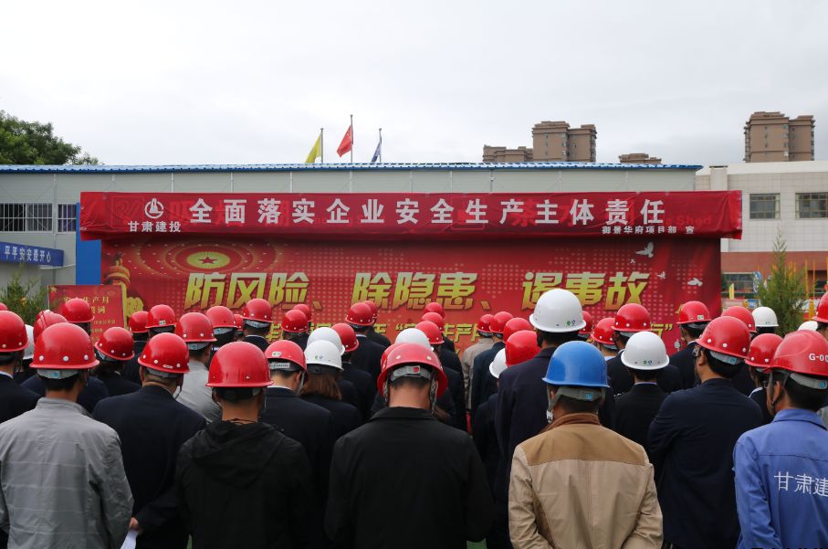 為深入學(xué)習(xí)宣傳貫徹習(xí)近平總書(shū)記關(guān)于安全生產(chǎn)的重要論述,積極響應(yīng)國(guó)家、省、市和上級(jí)有關(guān)單位關(guān)于開(kāi)展“安全生產(chǎn)月”活動(dòng)的號(hào)召,6月27日上午,公司在御景華府在建項(xiàng)目工地開(kāi)展2019年“安全生產(chǎn)月”活動(dòng)。公司黨委委員、總經(jīng)理胡紅訓(xùn),市安監(jiān)站站長(zhǎng)尚平,副總經(jīng)理魏顯文、馬新平、柳振源,總工程師高健,總經(jīng)濟(jì)師王國(guó)太,公司職工代表,御景華府、平?jīng)鲆恢泻突菝裢顿Y大廈項(xiàng)目各參建單位負(fù)責(zé)人,共計(jì)70余人參加本次活動(dòng)。