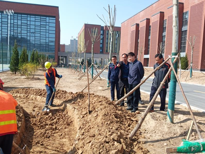督查平?jīng)鲆恢行滦^(qū)綠化施工現(xiàn)場
