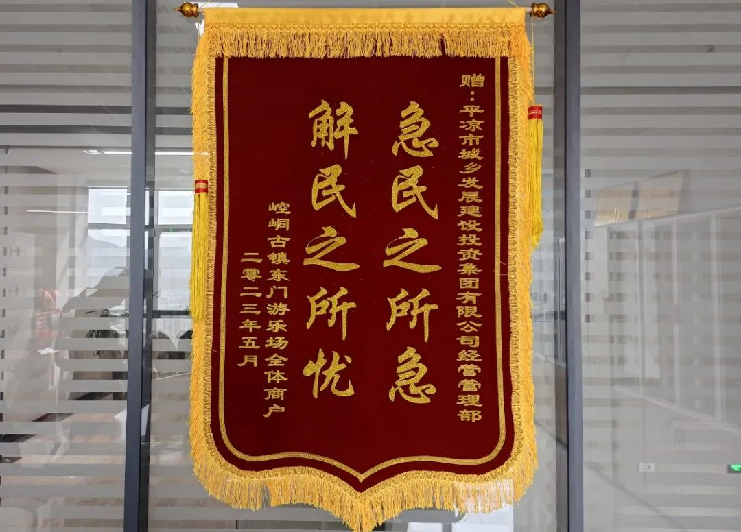 利民之事,絲發(fā)必興。平?jīng)龀峭都瘓F始終堅持以人民為中心的發(fā)展理念,深入推進“三抓三促”行動,努力為人民群眾辦實事、辦好事、解難題。5月12日,平?jīng)龀峭都瘓F經(jīng)營管理部收到來自崆峒古鎮(zhèn)東門游樂場全體租戶送來印著“急民之所急 解民之所憂”的錦旗,感謝平?jīng)龀峭都瘓F對古鎮(zhèn)東門游樂場再次順利開業(yè)的高度重視及優(yōu)質(zhì)高效解決問題的態(tài)度。