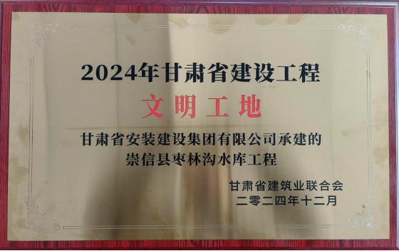 近期,由全過程咨詢公司監(jiān)理的崇信縣棗林溝水庫工程榮獲“2024年甘肅省水利工程文明工地”“2024年甘肅省建筑業(yè)綠色建造施工水平評價合格”稱號。
